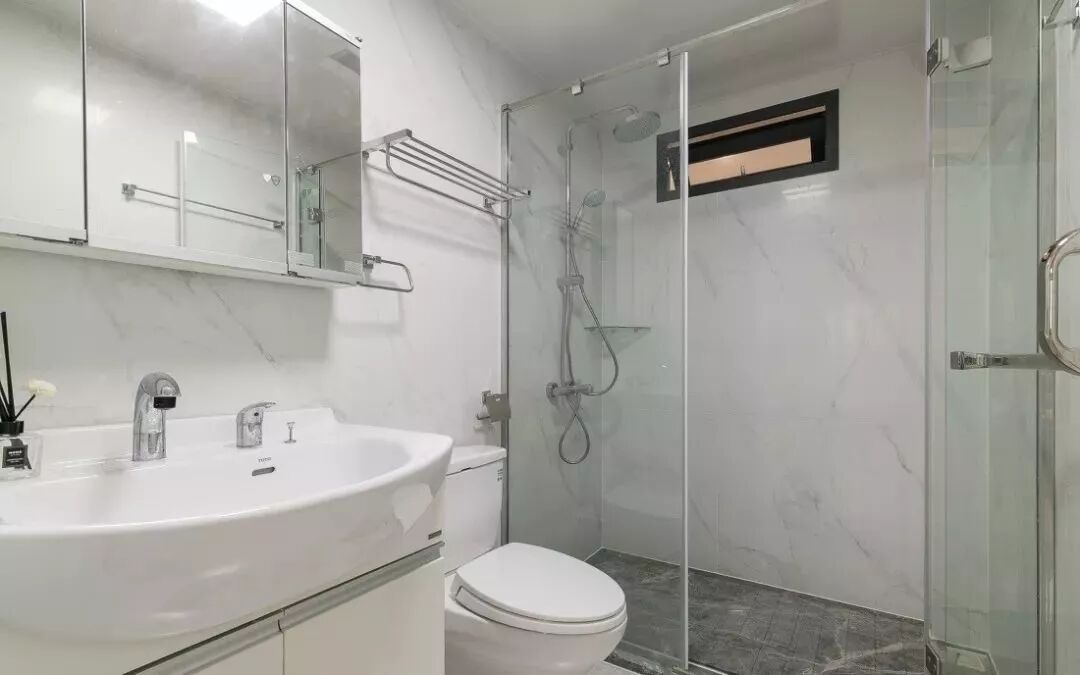 卫生间以白色为主,素雅干净,玻璃淋浴房就成了空间最自然的色彩。
