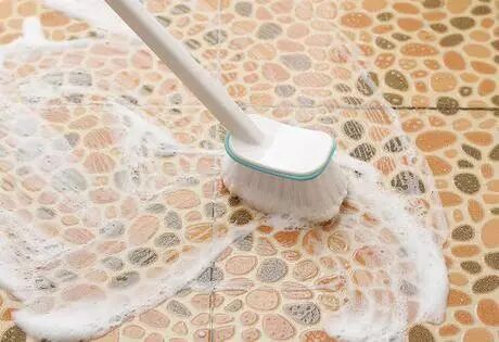 阳台可以准备一盆洗衣粉水,用刷毛硬一些的扫把直接刷洗缝隙。