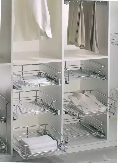 拉篮:T恤、衬衣、裤子、围巾等衣物分门别类放置,条理清晰,取用方便。