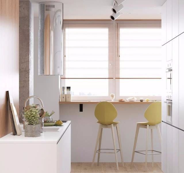 最喜欢的还是沿着窗户,一个大大的隔板,摆下两个吧台椅,和相爱的人一起,坐着这里聊聊天、畅想着未来。