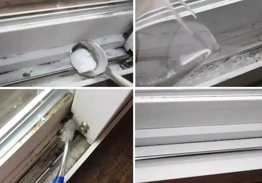 除了窗帘,窗户的轨道也不能忽视。首先在污渍处放入适量的小苏打,加白醋静置些许时间,用废旧的牙刷将角角落落都刷一遍,再用抹布擦一遍就行。