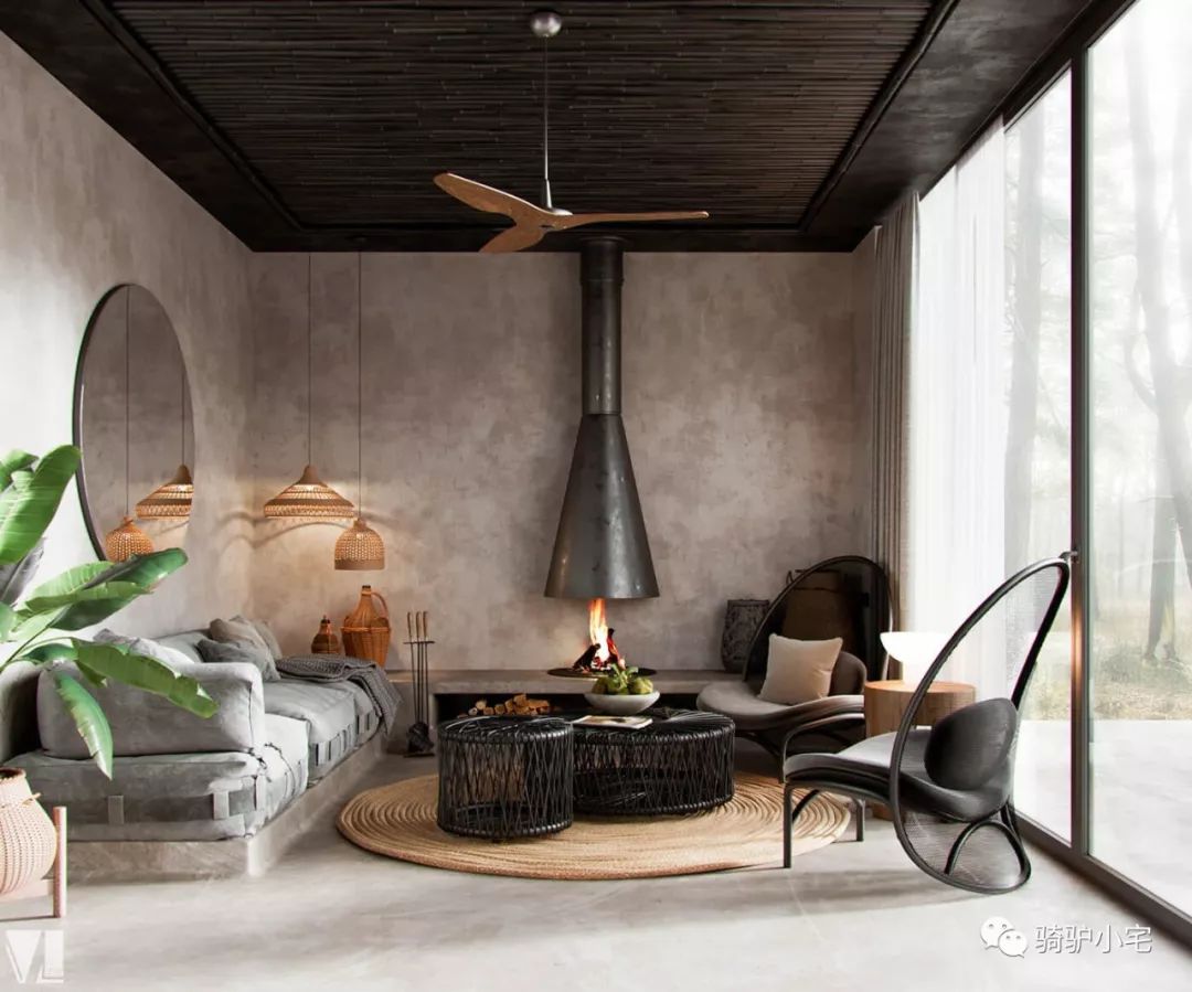 借助原木、绿植、灯光、布艺等元素,