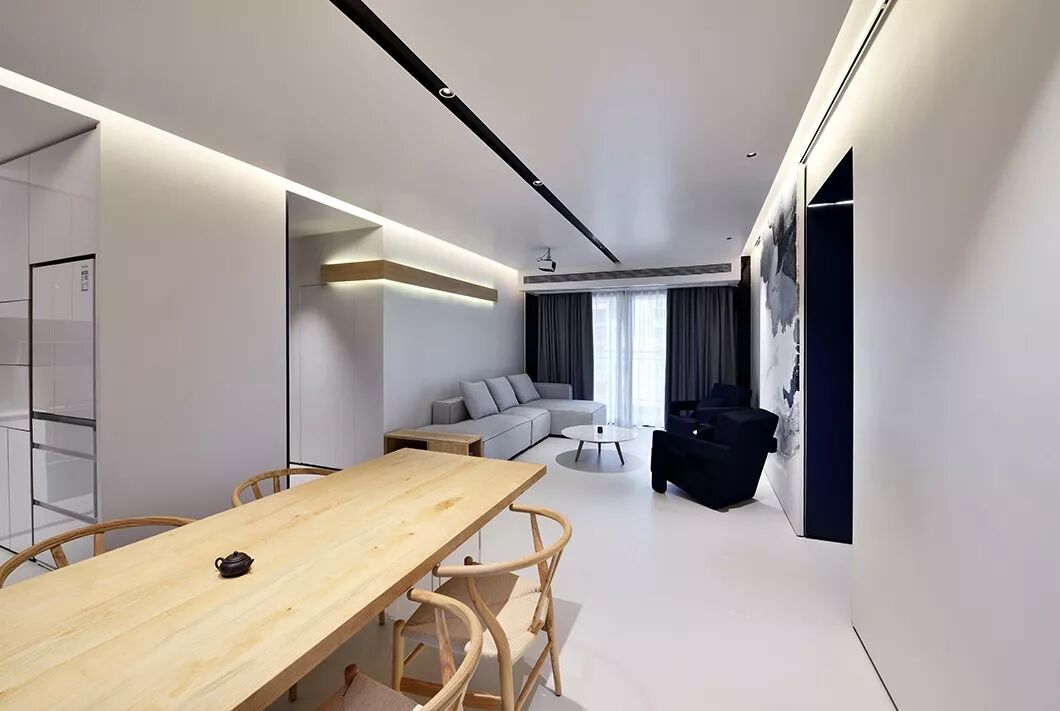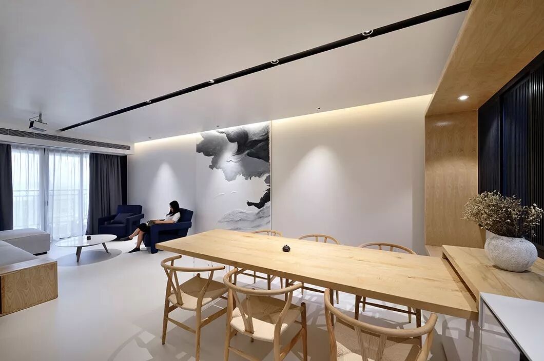 在这个128平米的三口之家里,舍弃欲望,清空俗事。在龙湖山庄旁,在清幽环境中,投入空灵温暖的臂弯。《卧虎藏龙》里,李慕白曾说过:你握紧拳头,手里什么都没有。你松开十指,却能拥有整个世界。这家人松开十指,舍弃良多,却拥有更简单的幸福。这便是设计师的初衷吧!