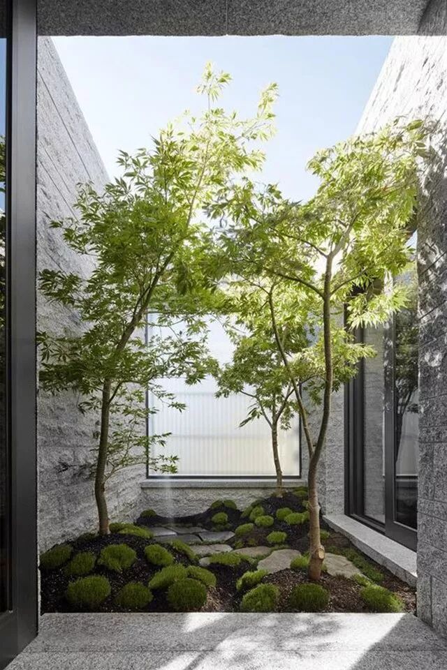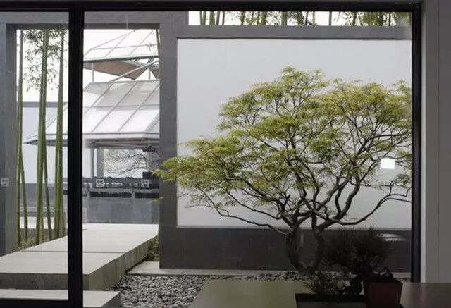 窗外风景,安坐室内,透过窗框外的植物配置,俨然一幅生动的画面,窗是不变的,但植物却会不断生长,随四季产生变化,静中有动,构成相对持久的画面。
