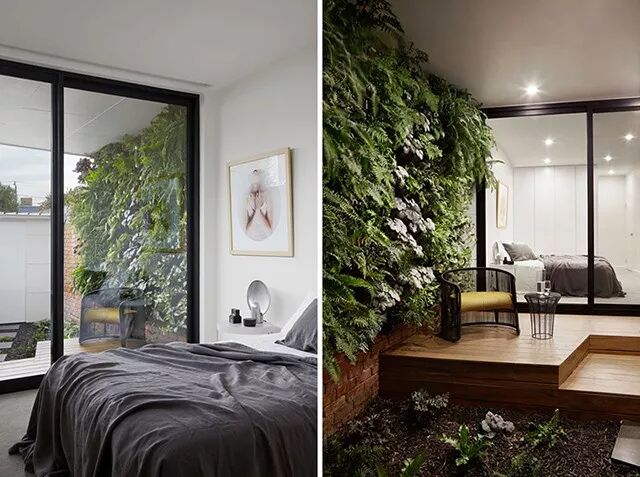 植物是有生命的活体,有灵动的自然美,而建筑是固定的,人工的,植物与建筑,一软一硬,一张一弛,质感组成皆不同,形成鲜明对比,两者表现出相辅相成、相得益彰的关系。