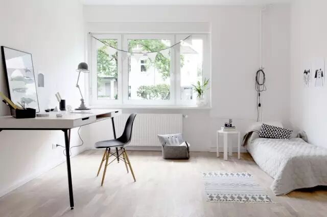 保持空间不杂乱,维持这一点很简单,做到东西少即可。装饰在北欧设计中占据比例并不大,所以光秃秃的墙面、空荡荡的空间在北欧风中常常看到,这大概也是北欧风格的特点。