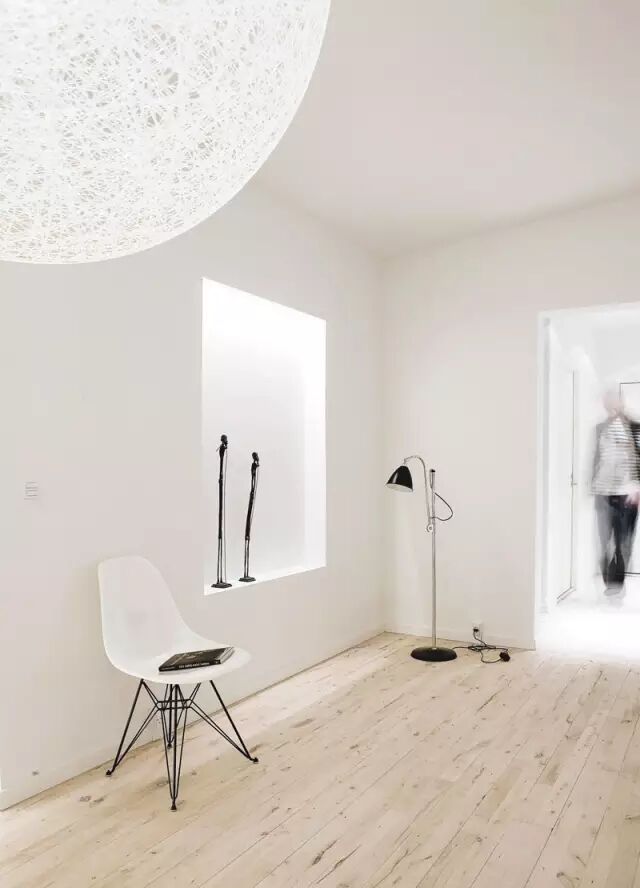 北欧的冬天漫长而寒冷,这是地理因素决定的。在北欧设计中,基调主要以白色为主,柔和的灯光能够润色白色的冷感,同时低调的衔接各个空间,是整个空间均匀的笼罩在温暖明亮的灯光中。