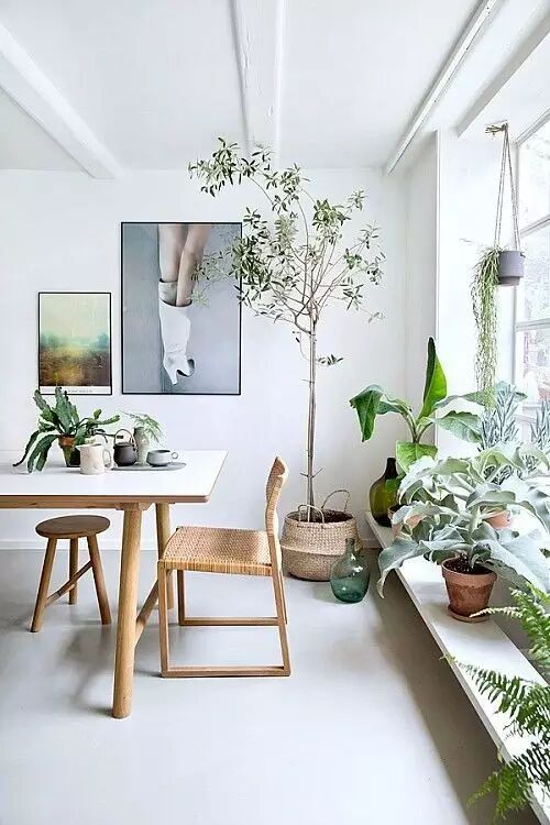 北欧设计中绿植往往是不可或缺的存在,一片白中的一点绿,最能代表生机,点亮空间非绿植莫属。