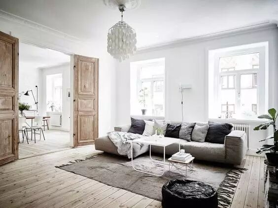 北欧设计中地面的设计通常是实木地板,重点区域再加一块块毯,鲜少有满铺地毯的情况。当然,国内常用的地面瓷砖,在传统北欧风格中也是没有的。如果你要做北欧风格设计,前提是地面要用实木地板铺设哦。