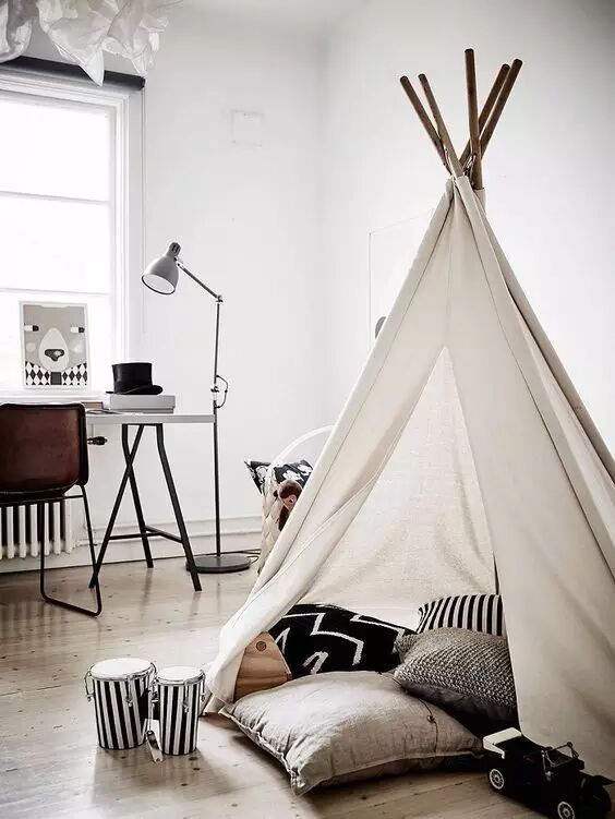 2+1的新家庭选择北欧设计,儿童房中最常出现的绝对是实用、简单的木制玩具、木制帐篷等,他们是北欧儿童房中的必备道具。安全、环保,深得孩子们的喜爱。