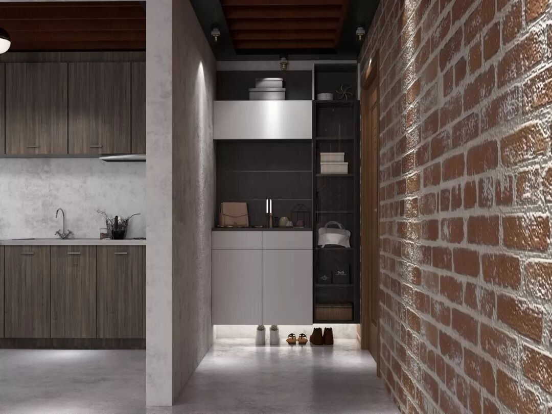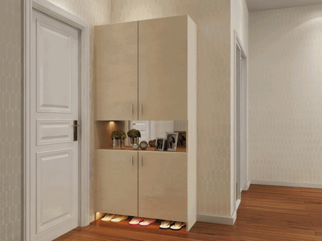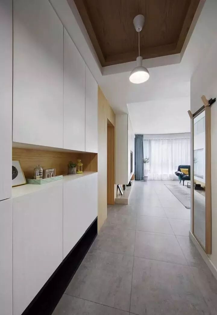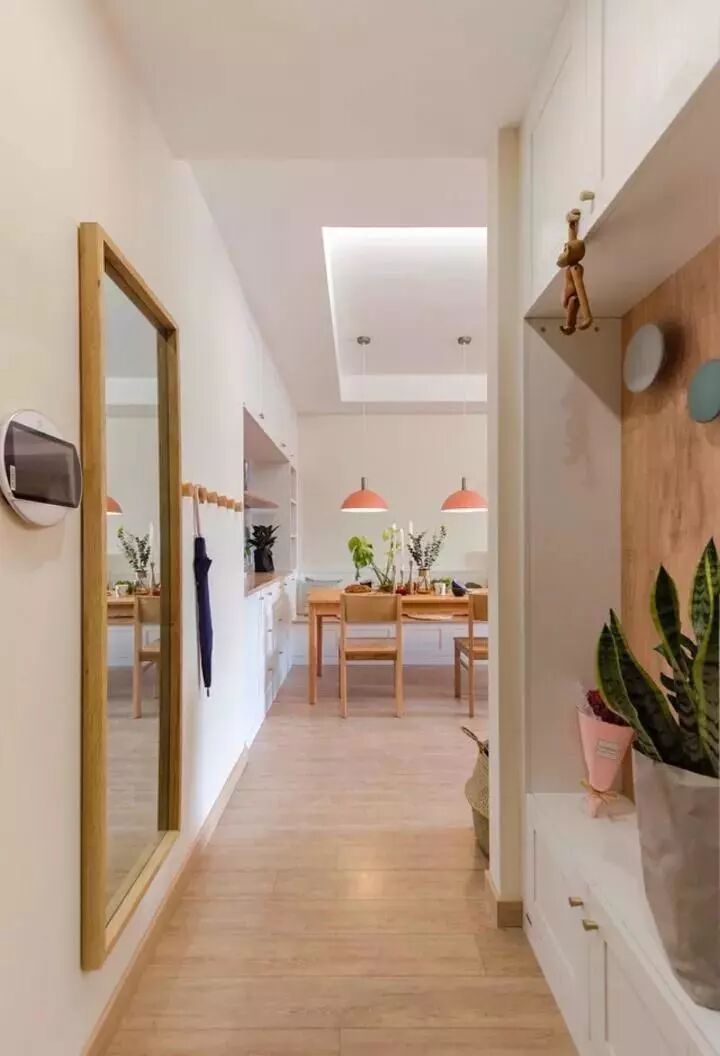 若是走廊型户型,可门后或凹陷区等犄角旮旯处设置玄关柜↓