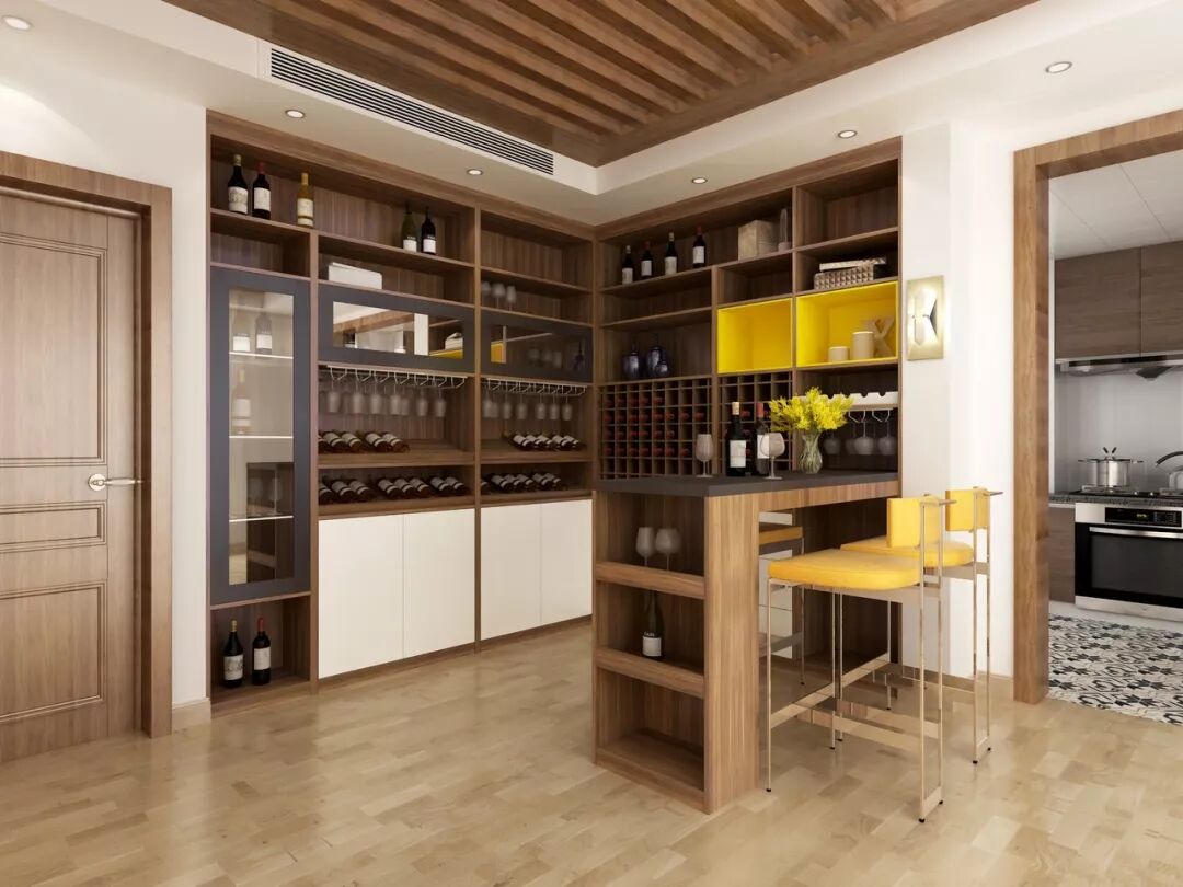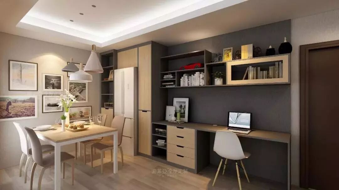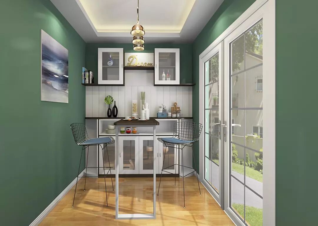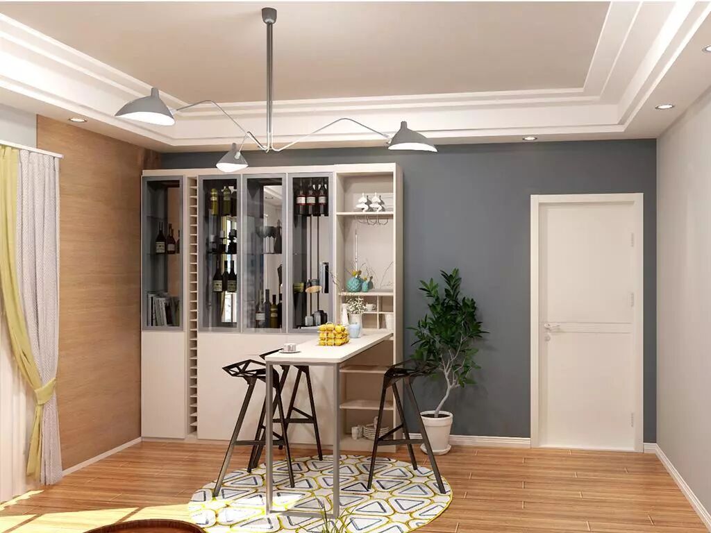 在餐厅利用1㎡放置一张小长桌打造成吧台,加班回来独自一人在这里吃饭喝酒也是极有情调的,或许很多难处理的case就在这里想通了;