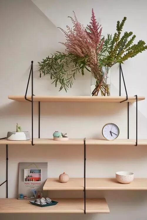 淡淡的原木色系装饰架,搭配绿植和小件收藏品,怎么摆都很好看~