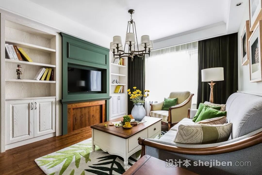 除了单纯的装饰,沙发背景墙还能做收纳设计,尤其适合空间小的客厅,可以做搁板、置物架和收纳柜。各种造型的搁板和储物格子,既能储物,又有装饰作用。