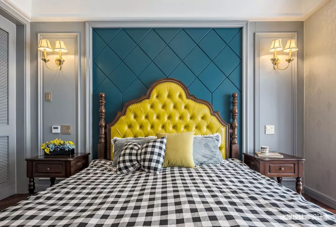 ▲软包背景墙比较柔软,选用柔和的色调能起到柔化空间的效果。