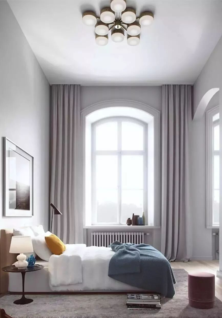适合光线暗一点的卧室可以选择有黑色加层较厚重感的窗帘,遮光又保暖,礼拜天还能睡个好觉。