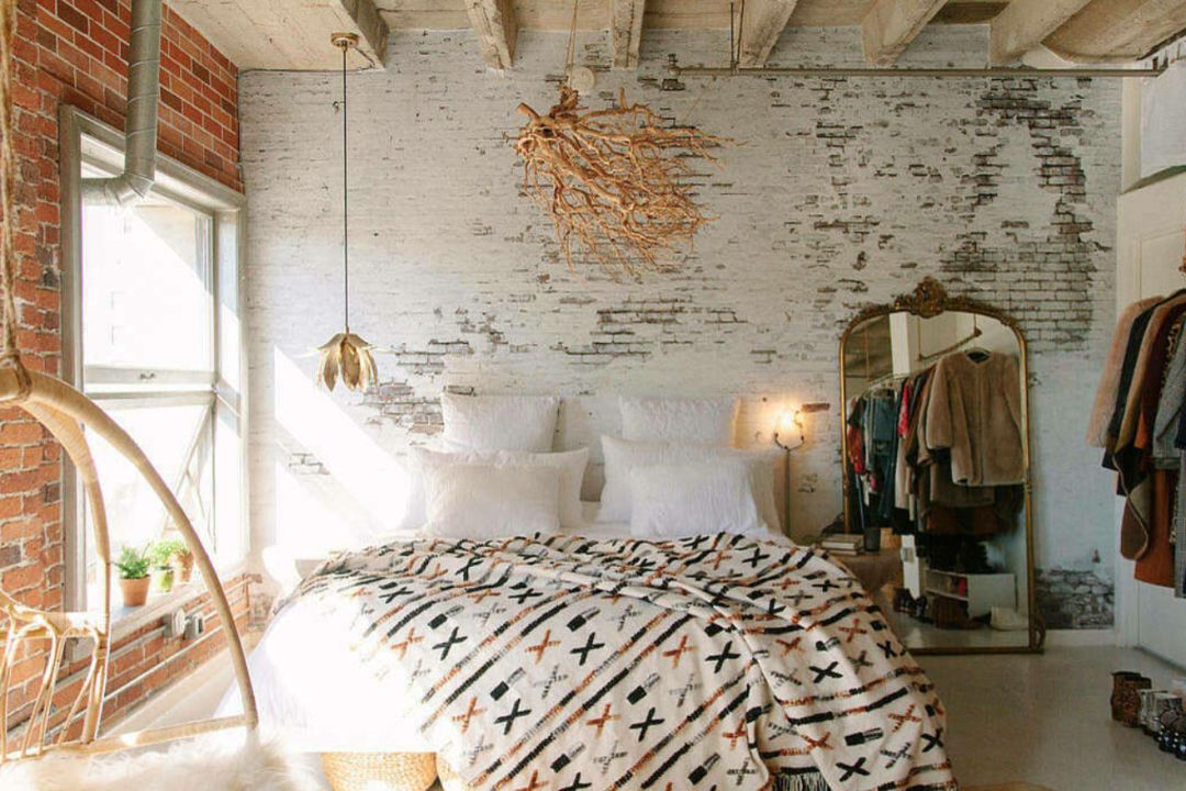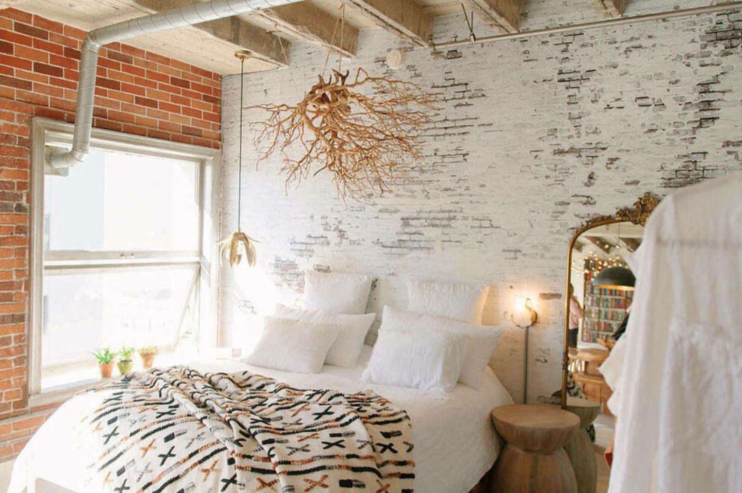 ▲室内的隔墙被拆除,开放式的布局让光线穿行更加无阻,卧室依旧展现出了建筑最基本的形态,裸露的砖墙,突出的横梁,横架着的管道,甚至是衣物都摆脱了衣柜的束缚。