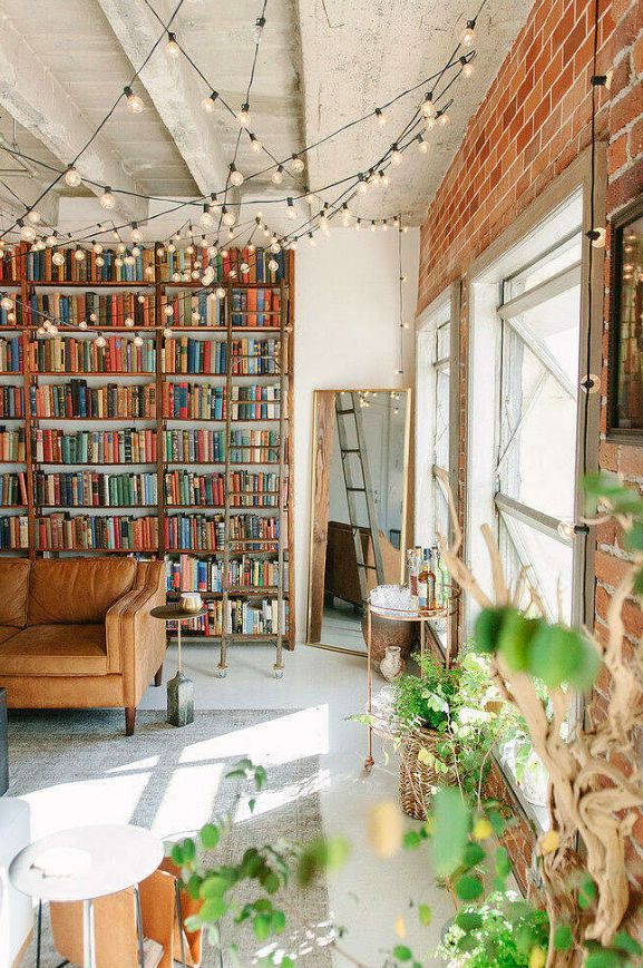 ▲这座阁楼不仅拥有层高的优势,还拥有五扇长度为1.5米的窗户,光线肆意洒入,室内是红砖、绿植、串灯点缀的清新世界,室外却是热闹喧哗的城市,形成了鲜明的对比。