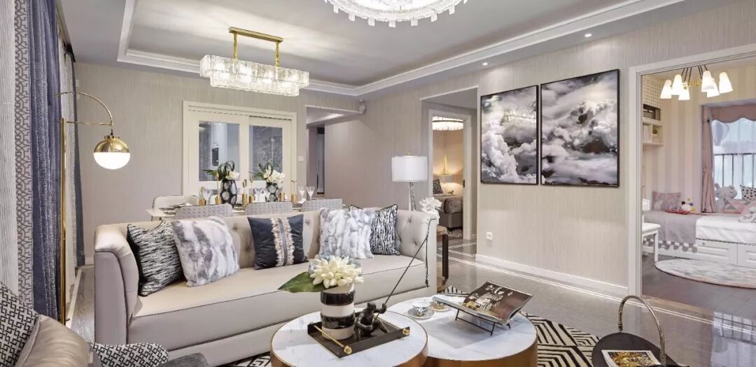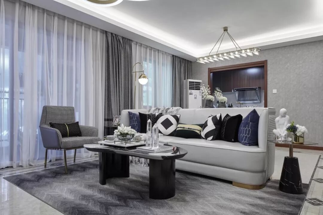 在两个长沙发摆在一起或是沙发的体积很大的情况下,矮茶几则是正确的选择,矮茶几的高度最好和沙发坐垫位置的高度持平。