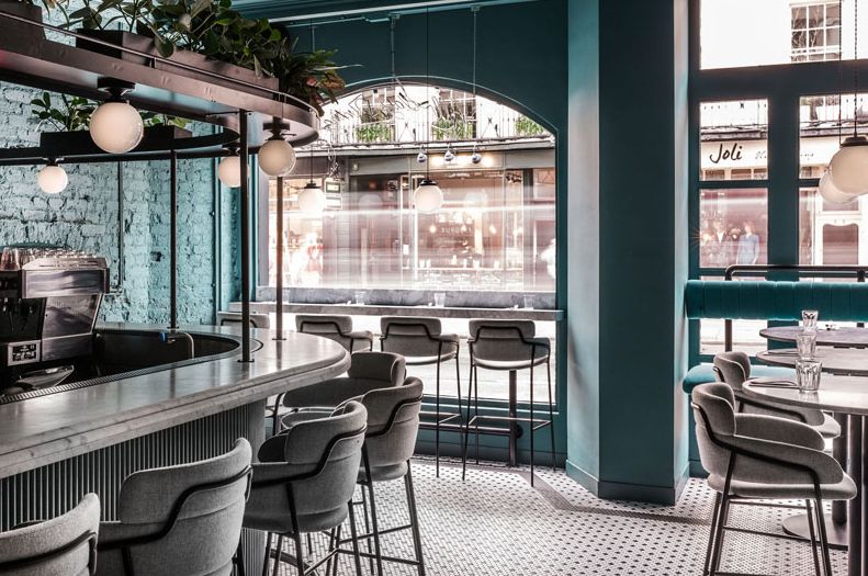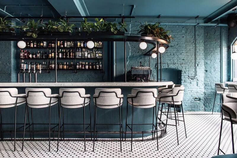 ▲酒吧区以森林绿作为主色调,色彩从光洁的墙面延伸至裸露的砖块甚至是交错的管道上,室内充满了历史的古典韵味,室外却是依旧繁忙喧嚣的街道,食客来到这里,也将产生一种置身于外的恍惚感。