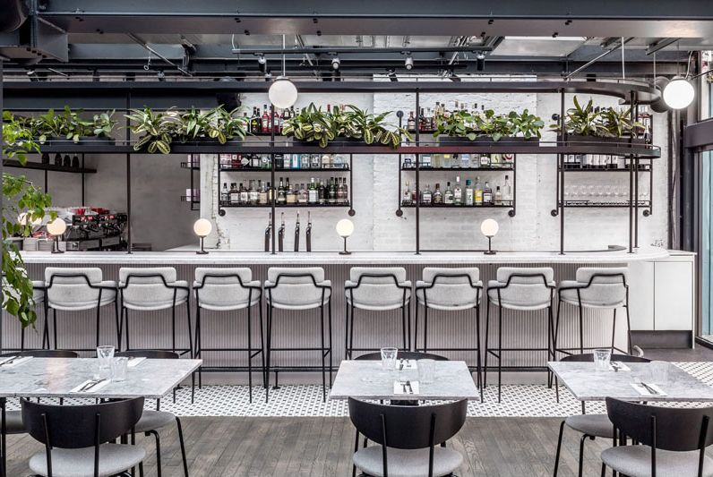 Greenwich Grind 是一家位于英国伦敦的综合型餐厅,包含了外卖部、鸡尾酒吧以及餐厅,由于业主将餐厅选在了一栋已列入遗产名录的老建筑内,所以当 Design studio Biasol 改造时,不仅需要营造全新的场域,也需考虑到建筑悠久的历史。