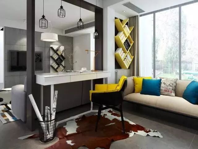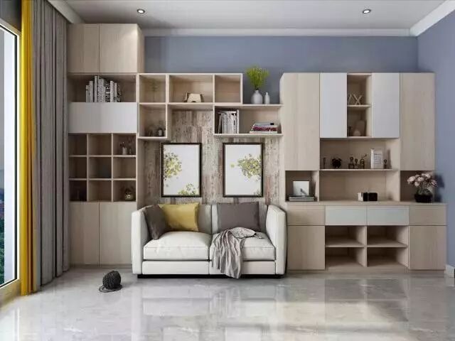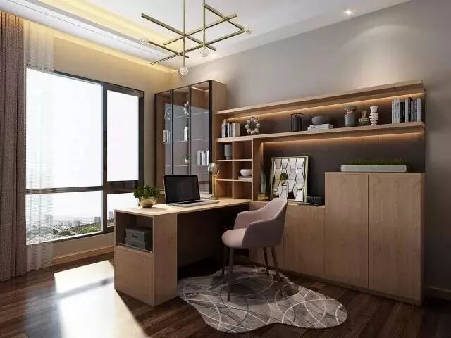 小户型的精明之选,随着现在客厅的影视功能已逐渐弱化,放弃电视墙,给自己定制一款电视陈列柜,将书房搬到客厅,提高电视墙的利用率,还装点了整个客厅。