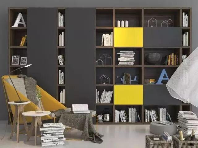 首先为了方便,我们按照空间来划分,看下来会发现书柜陈列柜的体量会越来越小,就算是只有2㎡的空间也有办法实现哦。下面一起来看看吧~