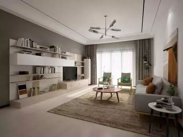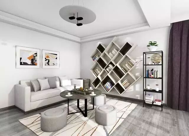 只需有效地利用电视背景和沙发背景,设置一个有型有款的书架墙,再加一个舒适的沙发,就足够了。