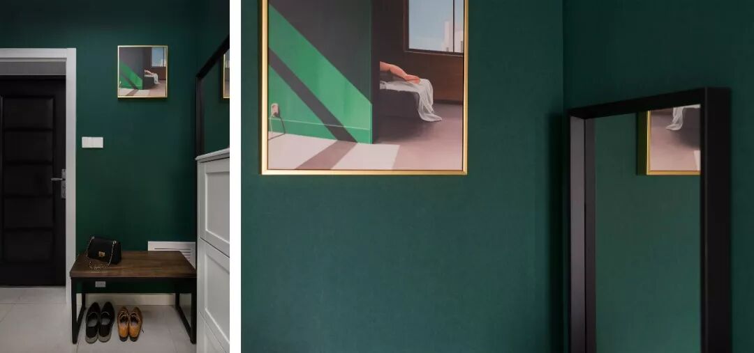 为了节省预算,保留原有地砖,而原先强电箱位置选择用挂画遮盖住。