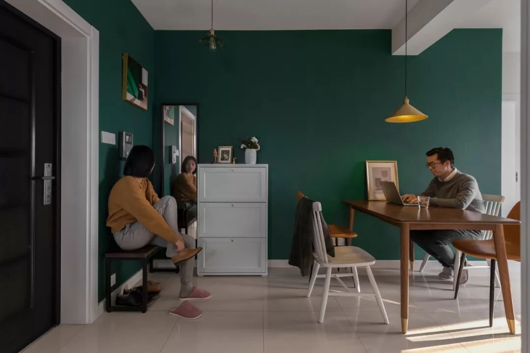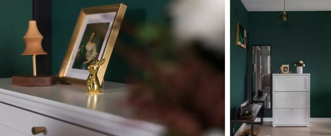 当跟着摄影师去家里拍照的时候,看着装修好的家,我仍然记得那天下午,客户跟着他男票来公司面聊时跟我讲的话:这个房子是家里人出钱给我买的,装修就没有啥钱了。所以要我自己付,我只能先预支年底年终奖的钱。。。。。我们的钱不多,可还是希望家里能够美美的。我比较喜欢文艺复古的东西,想着家里能不能刷一面绿色的墙,主卧室刷一面蓝色的背景?。。。。。