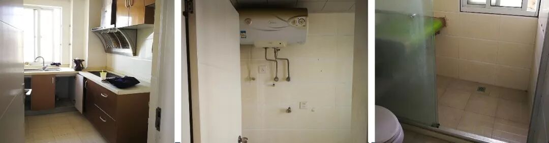 很难受的是厨卫方面,进入厕所要从厨房那边进入,且厨房的操作台面好小。一个L型厨房除了一个水槽,一个油烟机,一个冰箱的区域,没了。而卫生间比较奇葩的是浴室柜竟然在淋浴房。。。。可想每次的操作该有多不方便。