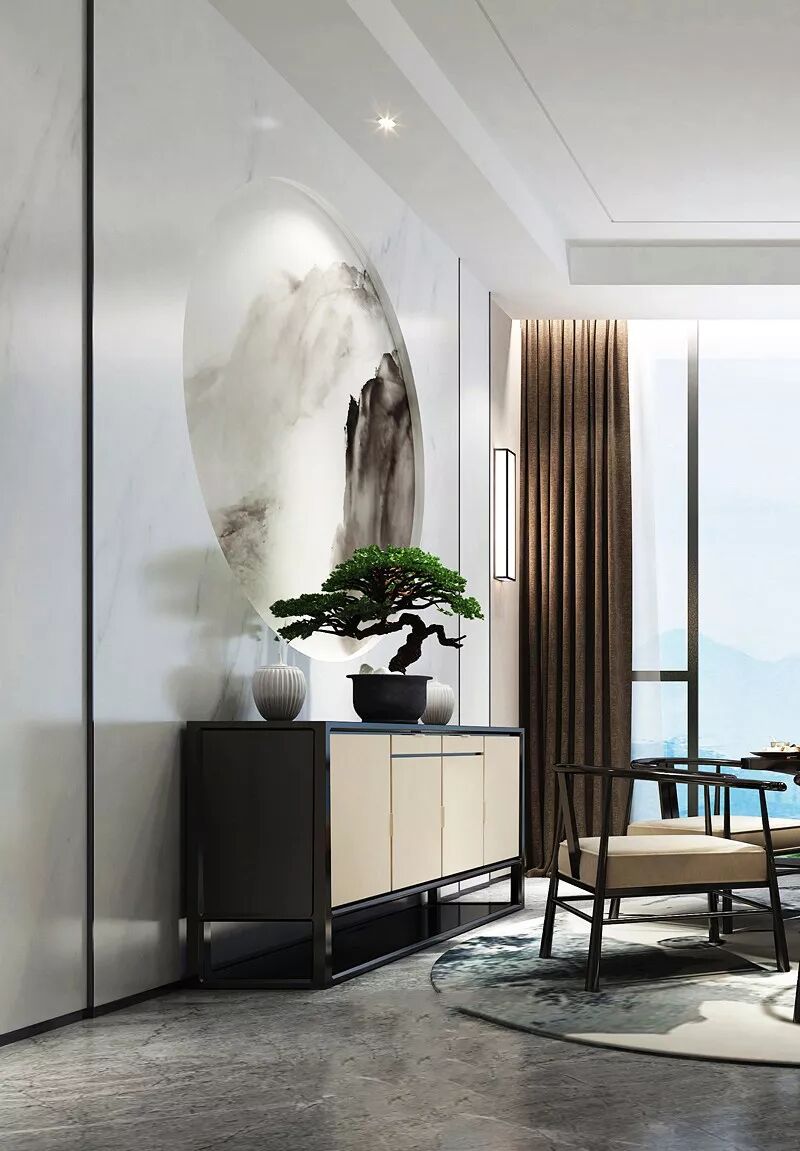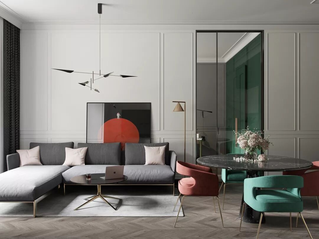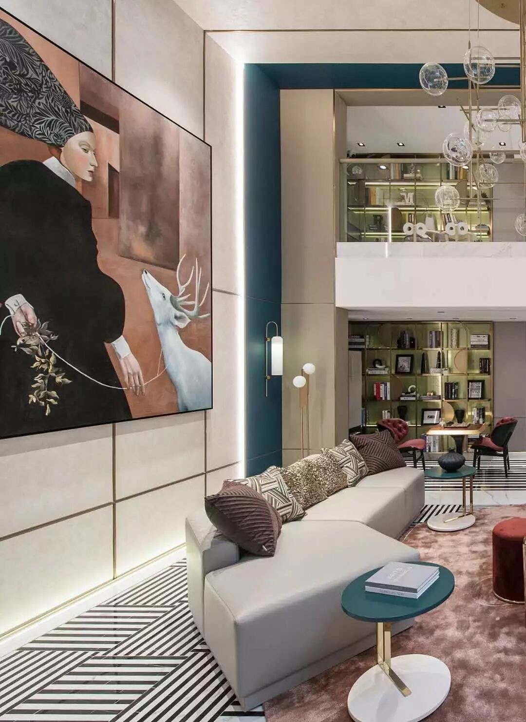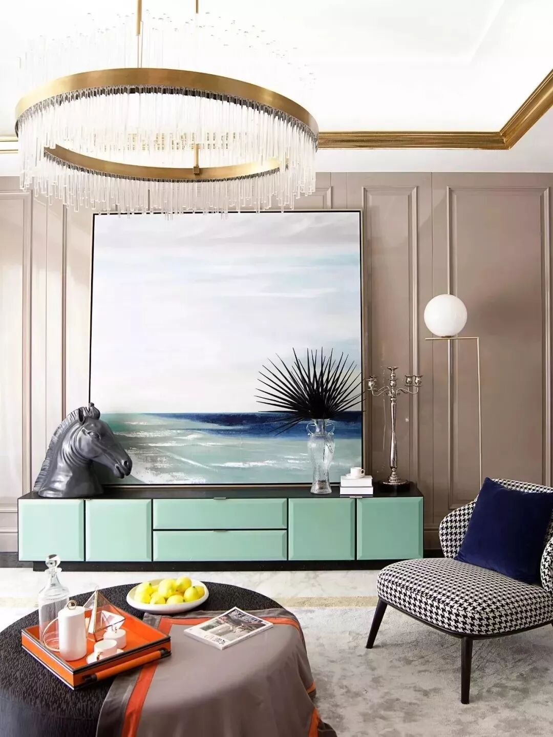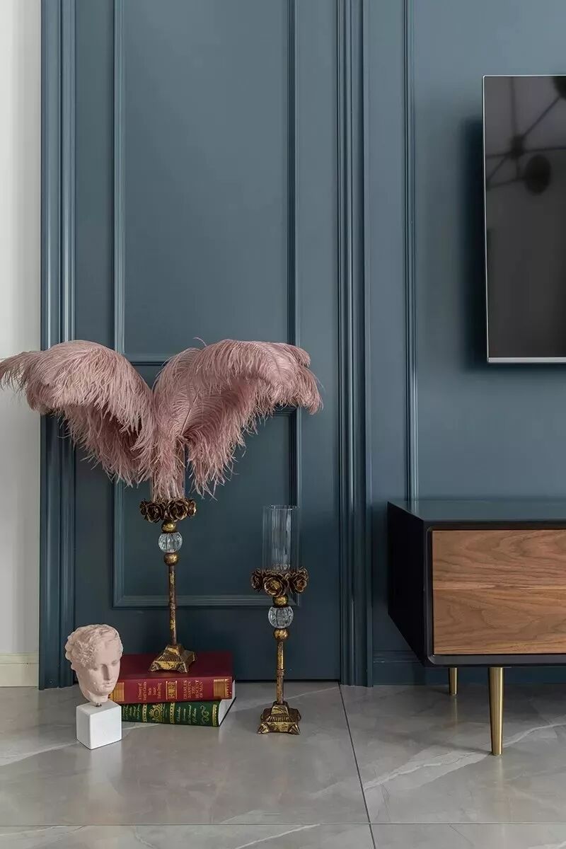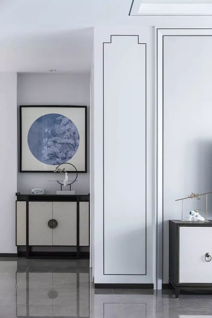 黑色线条给人的第一印象便是时尚利落。把黑色线条运用在墙角的转折处,可以加强空间的立体感。在顶面或背景墙面,使用黑色线条穿插在其中,增添了几分浓郁的复古气息。