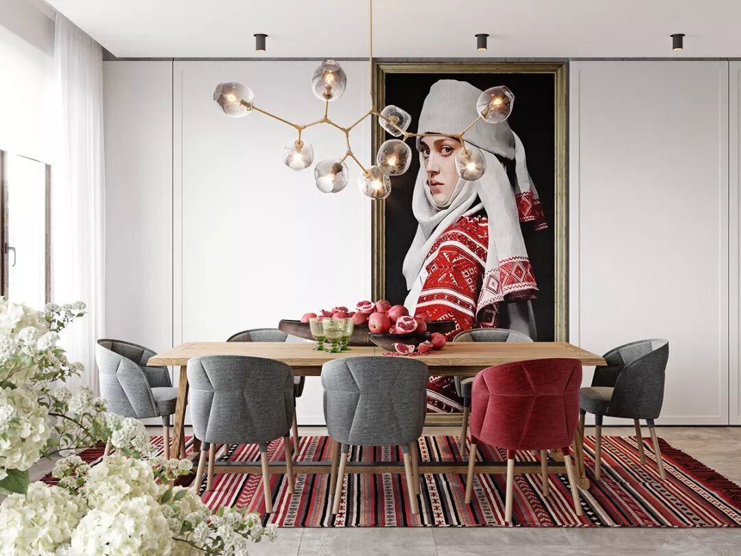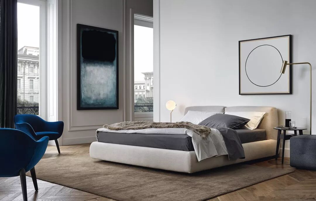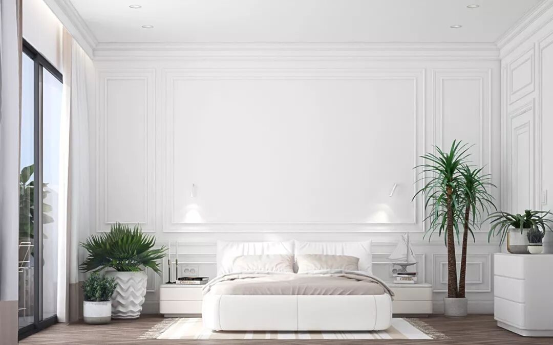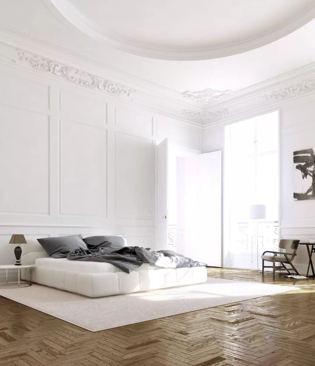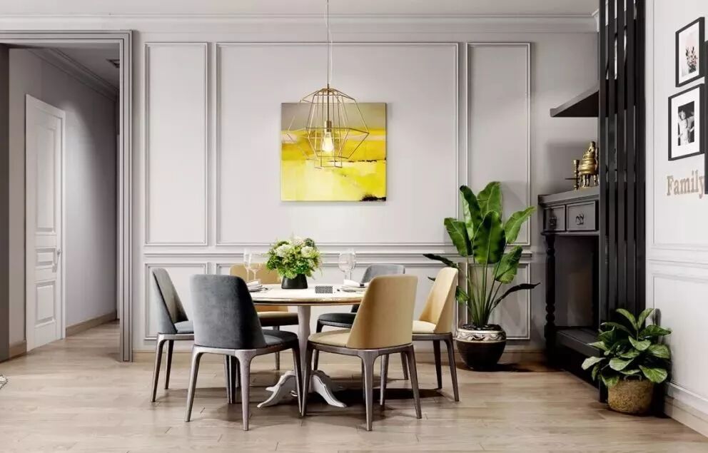 使用白色石膏线不仅美观、还会让空间有层次感。如果想打造简约风格,可以选择使用最简单的窄框石膏线。选择几何形的线框,将墙面勾勒成几个部分,给苍白单调的家居墙面增加一点趣味。