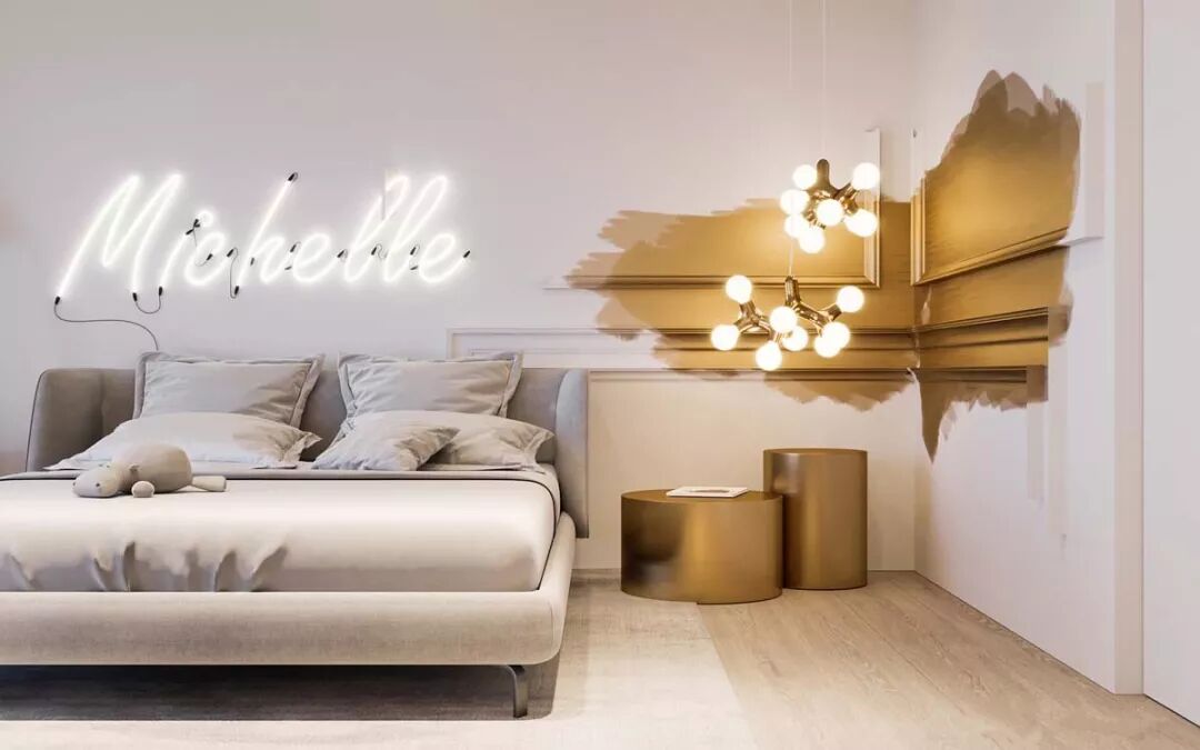 装饰线条的种类早已琳琅满目,各类金属线条、木线条,石材、塑料等装饰线条都可以与墙面进行搭配。墙面还可以拉槽,局部采用金色、银色的金属线条勾勒,可以达到画龙点睛的作用。