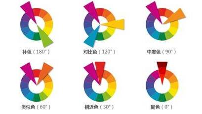色相对比的类型:两种以上色彩组合后,由于色相差别而形成的色彩对比效果称为色相对比。色相对比强弱程度取决于色相之间在色相环上的距离(角度),距离(角度)越小对比越弱,反之则对比越强。
