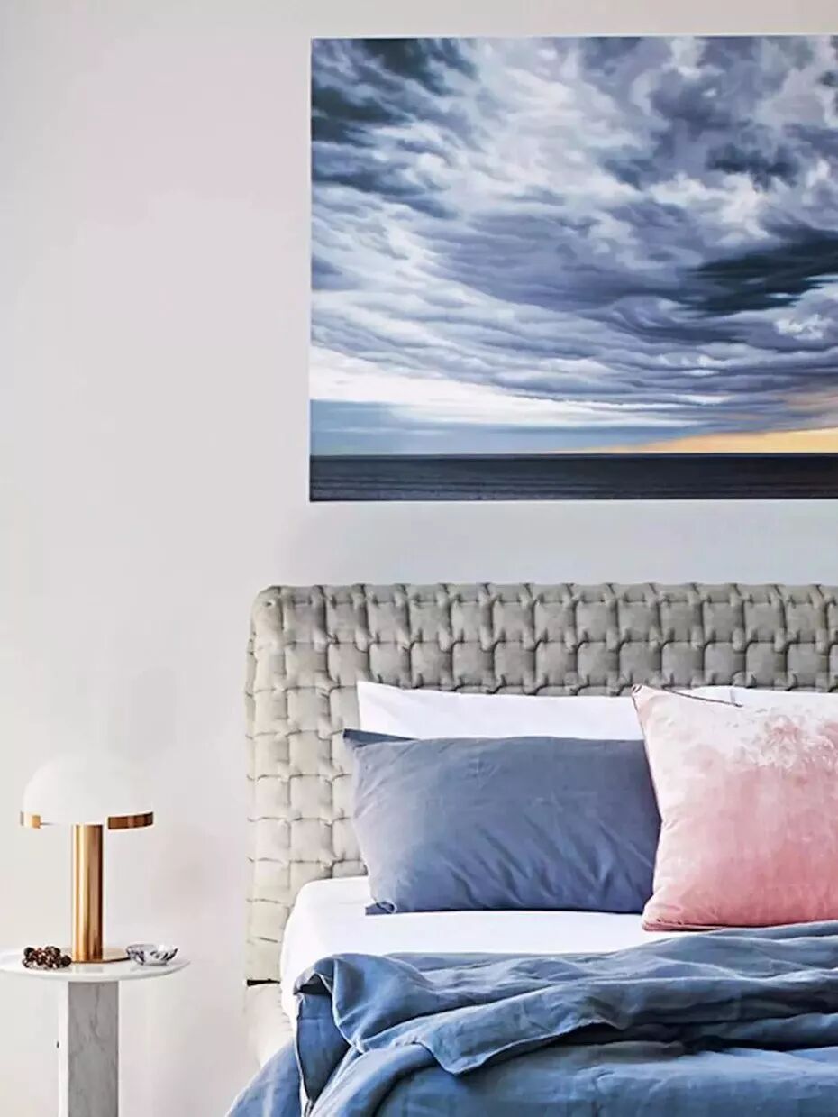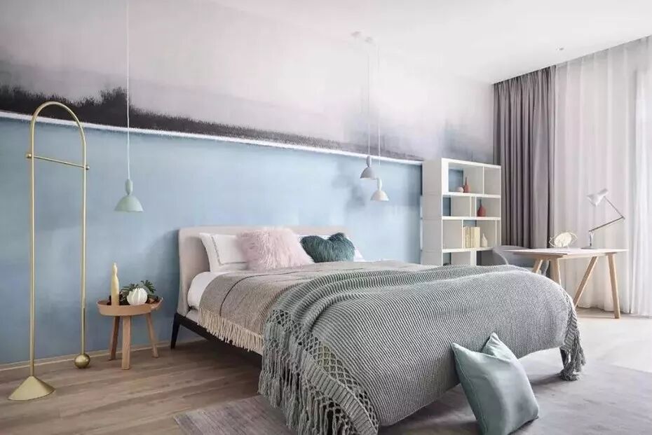 蓝色是一种比较安静、清新的色调,会让人更平静,并且与其他配饰一起可以搭配出独特的浪漫气息。倘若居室主人患有高血压或心脏病,最好选择淡蓝色的卧室,以利于血压下降、脉搏恢复正常。