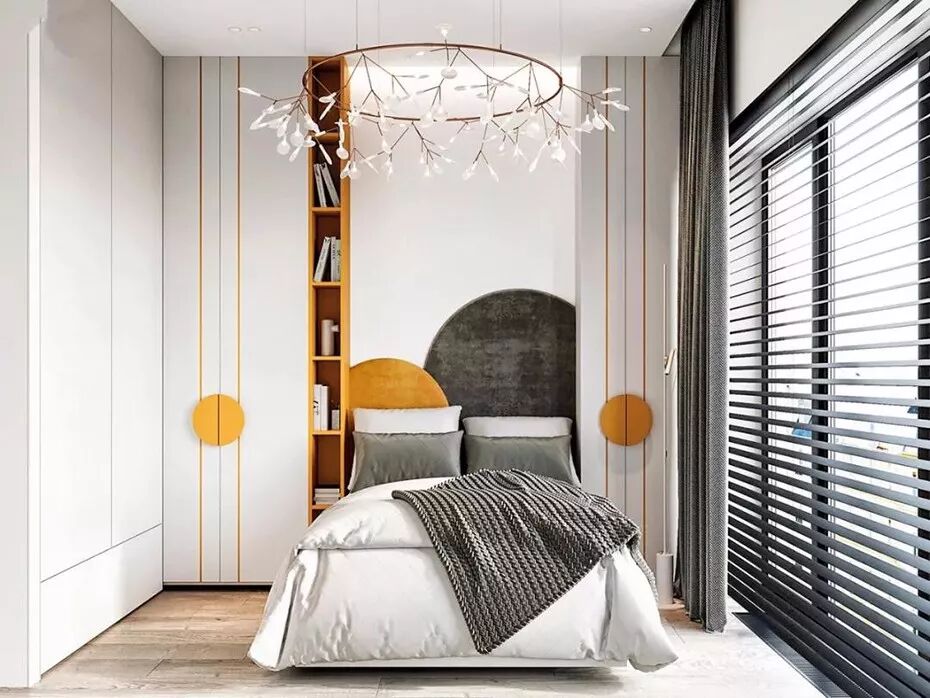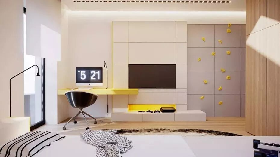 不过卧室作为人休息的空间,建议不要大面积选择饱和度较高的色彩,最好作为卧室床品、装饰品等点缀性色彩。