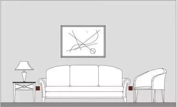 2.决定沙发的长度,别让沙发把两边的插座挡住了。如果不确定买什么样式的沙发,可以把沙发插座位置定到1.1米高,也就是在靠背的位置。