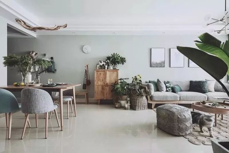 对于绿植,相信多数人都是难以抗拒的,在这个客餐厅之间加一盆绿植,让空间显得更加清新惬意。