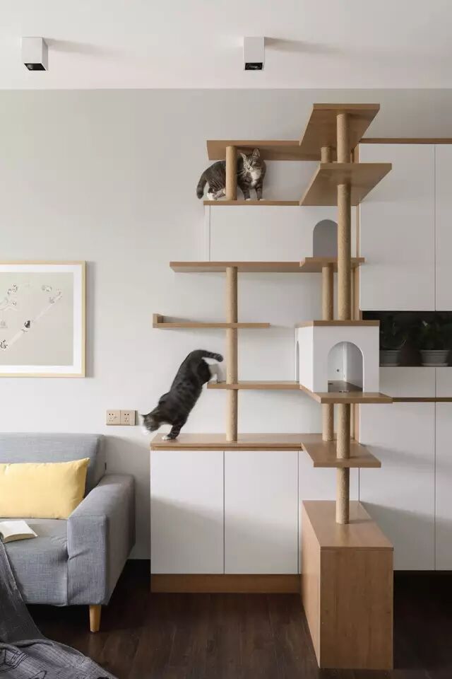 ▲定制柜体的设计,让空间的收纳更加丰富有趣。