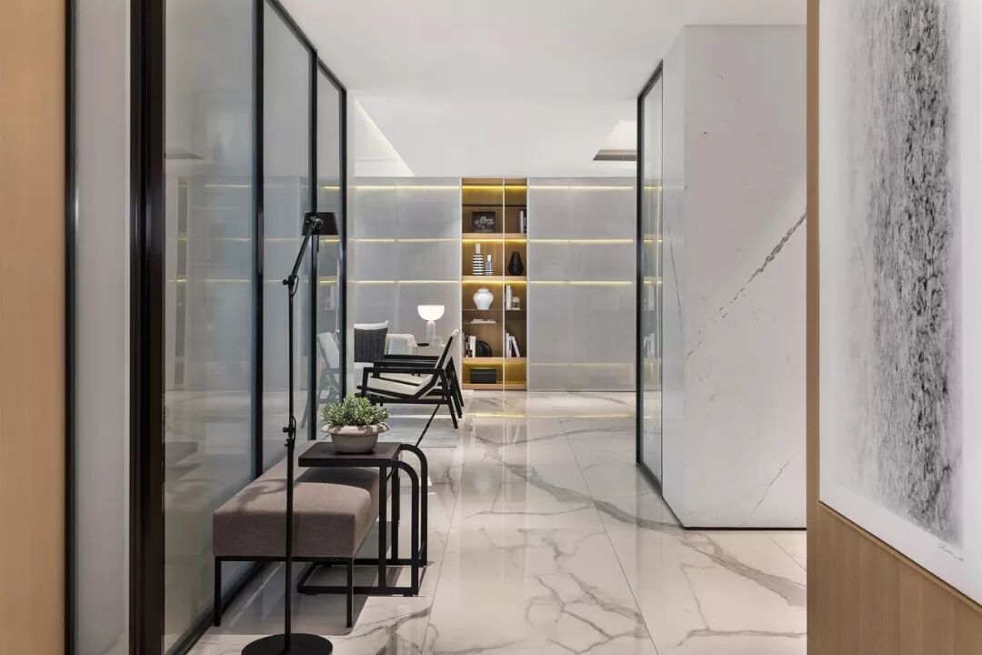 玄关隔断:玄关作为入户第一眼看到的空间,决定着进入门后的情绪感受。玄关隔断需注意以浅色系配色为主,隔断的设计可避免公共区域处一览无遗的状态,无形中增加空间趣味性,且保护主人隐私。