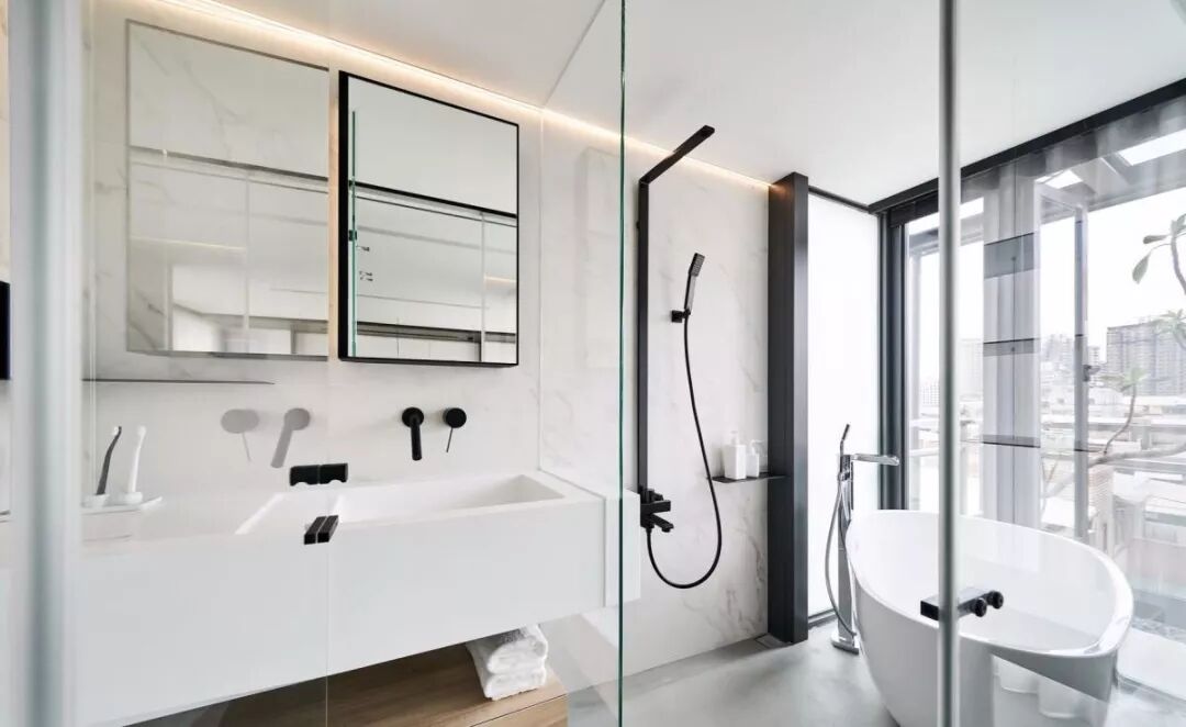 卫生间隔断:卫生间在整个家居环境中含水汽量最大,干湿分离最常用的是钢化玻璃。