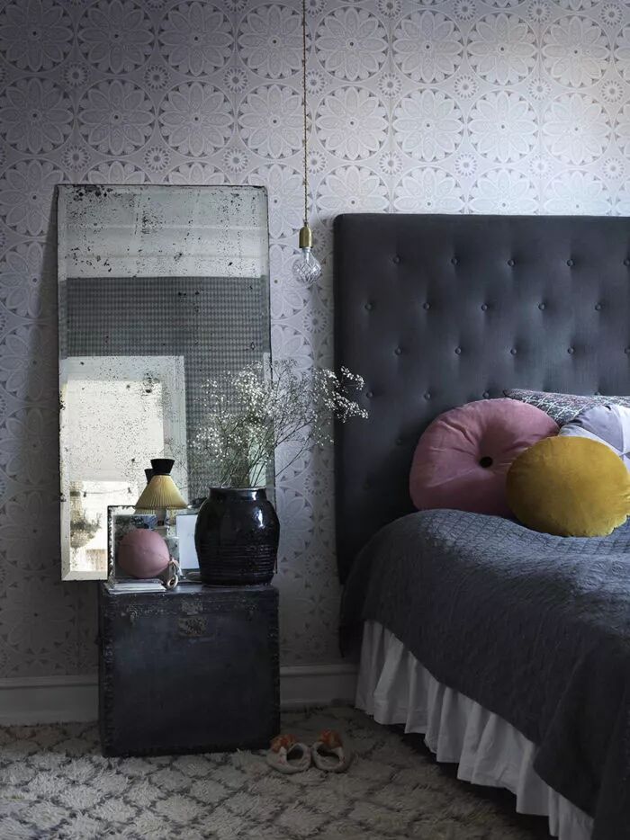 经典是永恒的。例如,柔软的灰色纺织床头板便是经典。但不要忘记其余细节,以便卧室内部太平庸和无聊。地毯,各种形状和大小的装饰枕头,灯光,活植物,镜子等等,这一切都将有助于赋予房间个性。复古家具和配件也将有助于营造独特的氛围和舒适感。
