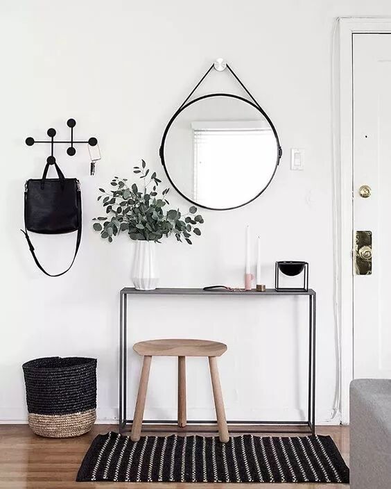 门厅处常常会显得拥挤,懂得巧妙利用镜子,如果空间不够,可以将四分式门厅柜的挂衣处改为镜子,不仅可以缓解空间的拘束感,同时还有起到很强的实用功能,临出门之前照一照,心情美美哒~