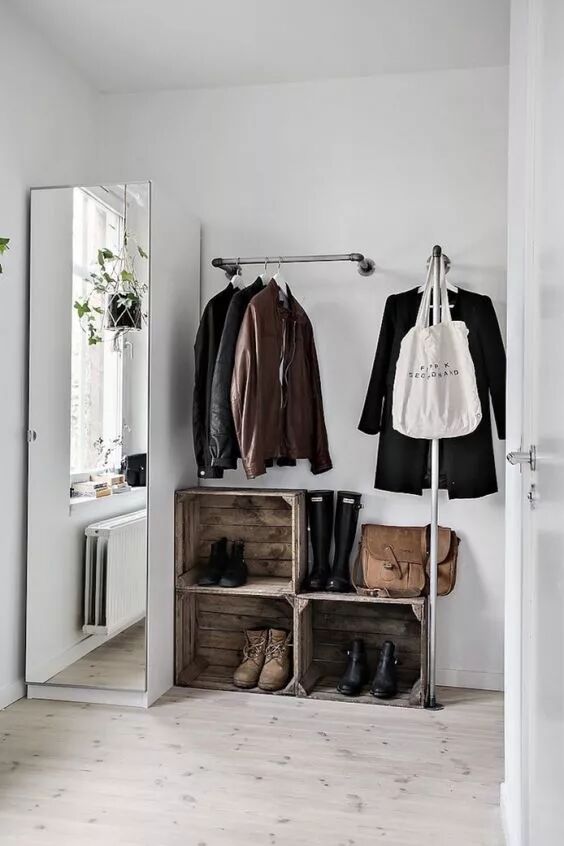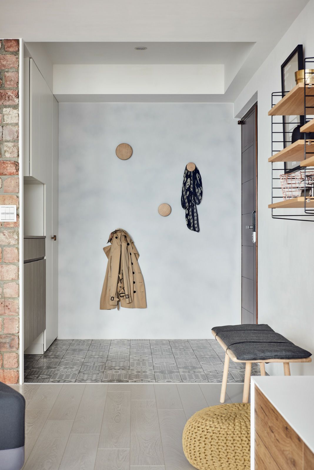 门厅柜的最主要作用是增大门厅的收纳储物功能,但其实可以将用于分割区域的柜体进行简化,最简化的状态就是不能再称之为柜,只是简单的木板进行功能划分,但是这样有创意性的设计,让门厅拥有更多的可能性。