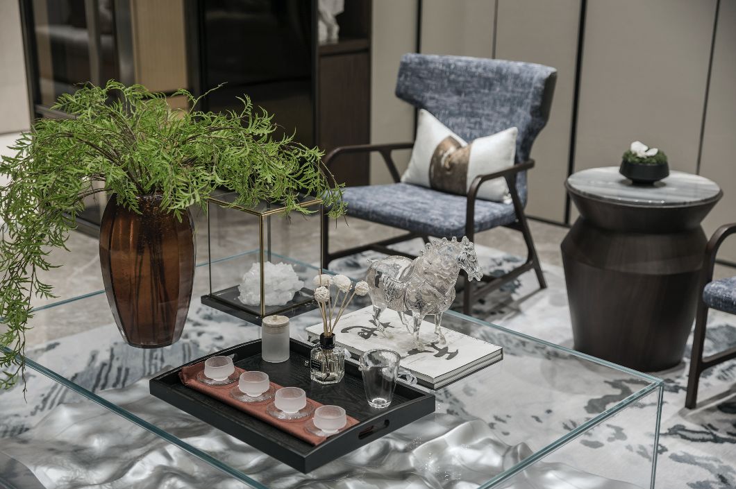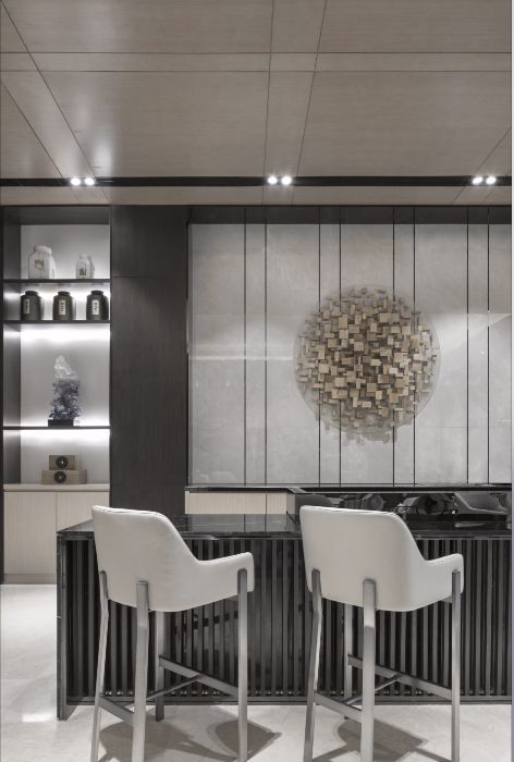 本案的空间设计传承了东方独特的风韵,端庄、大气,又践行了时下当红的轻奢主义理念,古今相继,从容自得。这既是新时代建筑空间浓墨重彩的一笔,也赋予了襄阳这座滨江城市的文化风骨以新的精神。
