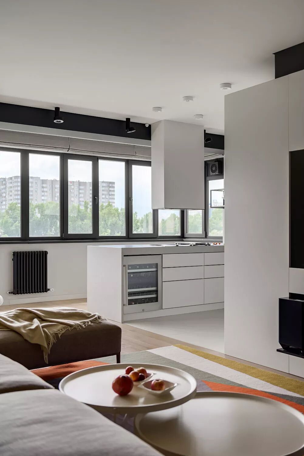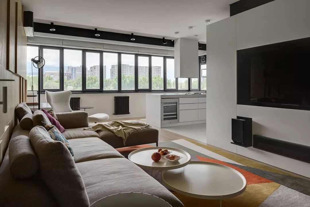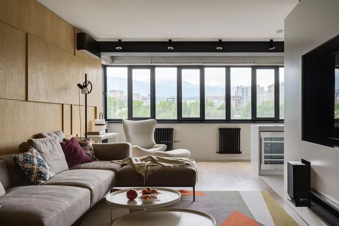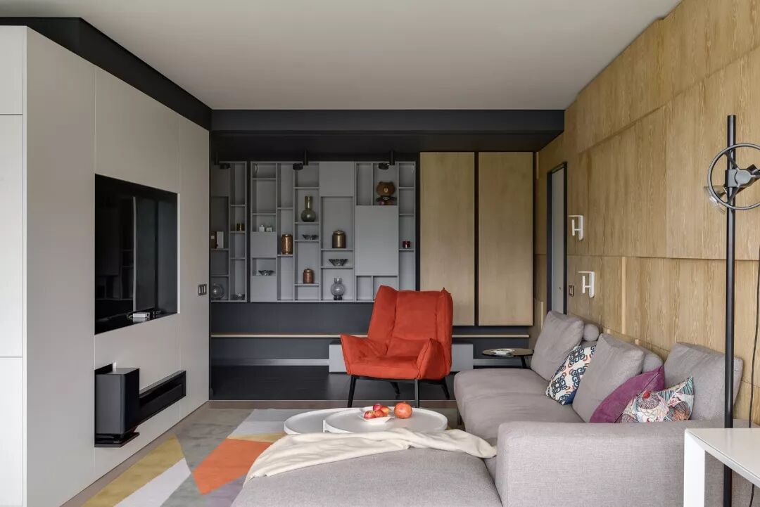 电视墙连接橱柜,开放式布局让 90㎡ 更显大!