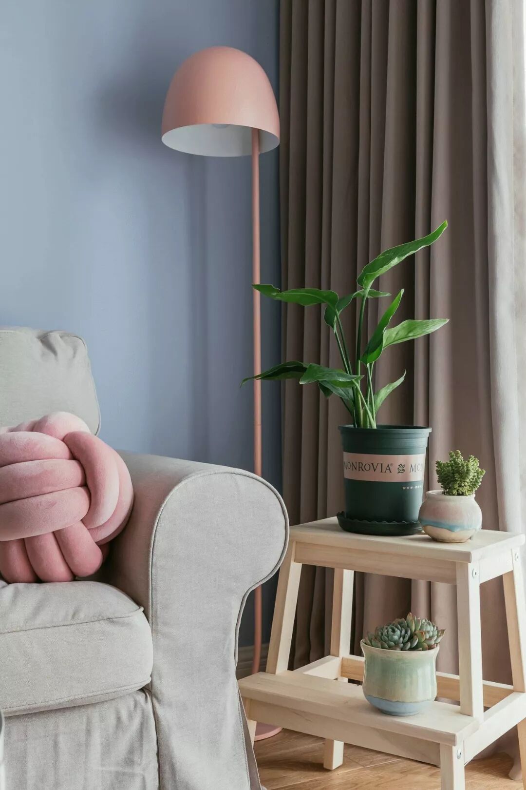色彩上,ins风比较接近简约的北欧风格,使用大面积纯色,搭配一些中性色比如米色、原木色等让整个空间简约又不简单。