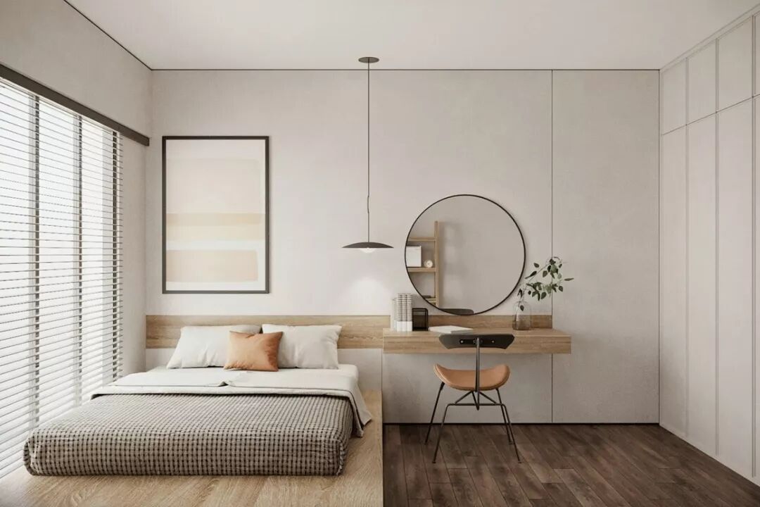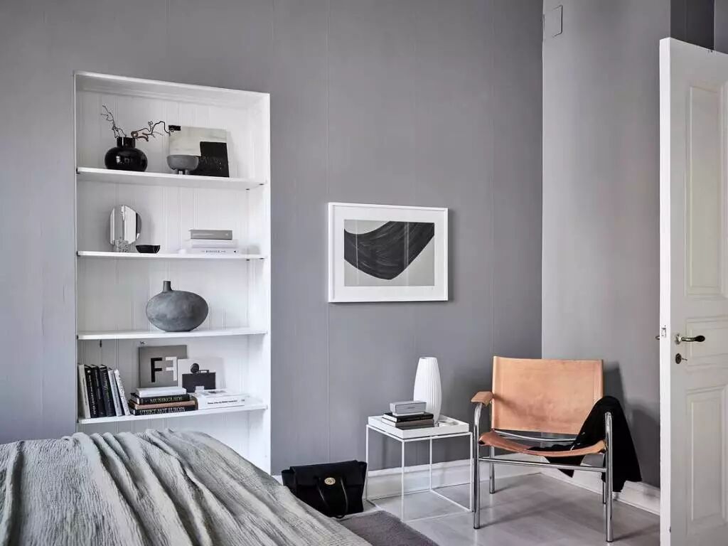 如果不想要纯白色的墙面,可以尝试把墙刷成灰色。灰色是中性色,能让空间比较有高级感。想让空间整体没那么冷冰冰,更女性一点,更温暖,可以选择粉色和其他暖色调。