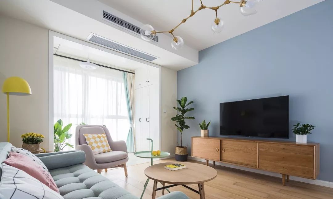 ▲现代简约风格,可以直接刷不同颜色的墙面乳胶漆,不需要其他复杂造型就很好看。